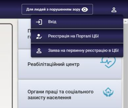 Вхід на портал Централізованого банку даних з проблем інвалідності