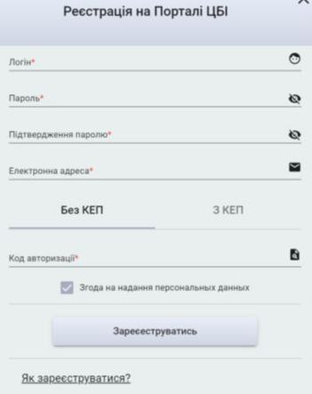 Якщо у людини є електронний підпис, то вона може самостійно зареєструватися на порталі. Для цього на головній сторінці порталу треба вибрати кнопку Реєстрація на порталі ЦБІ. Далі вибрати закладку з КЕП на формі реєстрації. КЕП – це електронний підпис людини. |