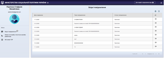 У електронний кабінет особи з інвалідністю приходять повідомлення про результат розгляду заяв. Тут напишуть, чи можете ви отримати технічні засоби реабілітації і чи потрібні інші документи. |